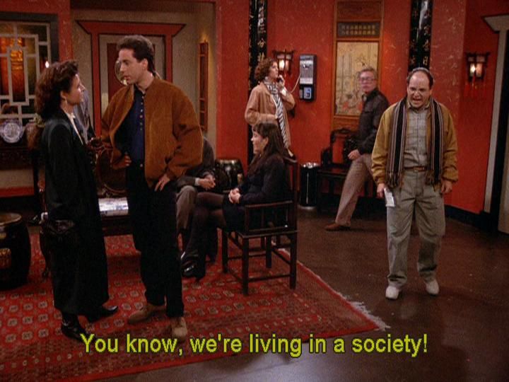 Re-watching the first season is always so fascinating. They clearly have a very distinct POV that would be present for the full run of the show. But they are still working out the kinks of how to express it. Only the Jerry characterization feels fully formed (mostly because there never ended up being much to it). Kramer is still a recluse. George feels more competent in just about every facet of his life. Elaine is a bit less self-involved. They are clearly working out the kinks but had immediate potential to go from good to great. Under communism, all network sitcoms will get a mandatory six-episode test run to work out the kinks.
