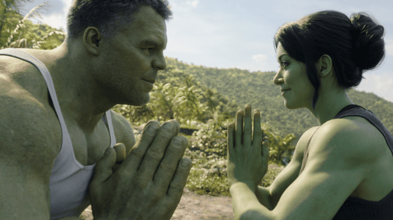What ISN’T as much of a concern for me now the series has arrived, is the CGI. The trailer footage was alarming enough for some people to call the show dead on arrival, but I was pleasantly surprised that for most of the episode She-Hulk just looks like a big painted lady. Should they arguably paint Tatiana Maslany green, put a wig on her, and use forced perspective to make her look 6 foot 7? Maybe? But Hulk has generally always looked good despite their iffier CGI in other places, so I think it makes sense to push for visual consistency. I actually think she looks better than he does for most of this episode.