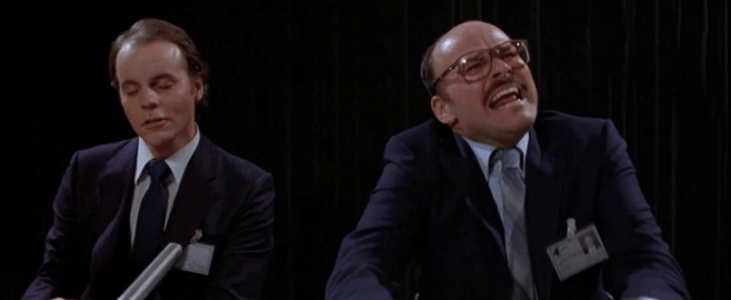 Here you see those ideas combined with Jeff Goldblum’s deep insecurity which informs his jealously of Gene Davis’ ex and also his foolhardy desire to accomplish his scientific advancements at all costs. The horniness and body horror are entangled with Goldblum’s insecurities and overcompensation. It makes for a simultaneous tragic and uncomfortable journey where you feel like this could be you if you gave in to to the lowest depths of your soul.