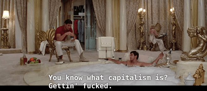 Tony Montana represents America and the West’s sins coming back to pay a hundred-fold. Tony can perhaps rise within the confines of the game that is American Capitalism, but this game ends in only one way for everyone.